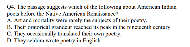 The outpouring of contemporary American Indian literature in the last twodecades, often called the Native American Renaissance, represents for manythe first opportunity to experience Native American poetry. The appreciationof traditional oral American Indian literature has been limited, hamperedbypoor translations and by the difficulty even in the rare culturally sensitiveand aesthetically satisfying translation, of completely conveying theoriginal's verse structure, tone and syntax. By writing in English and experimenting with European literary forms, contemporary American Indian writers have broadened their potentialaudience, while clearly retaining many essential characteristics of theirancestral oral traditions. For example, Pulitzer-prize- winning author N. Scott Momaday's poetry openly treats art and mortality in a manner thatrecalls British romantic poetry, while his poetic response to the power ofnatural forces recalls Cherokee oral literature. In the same way, his novels, an art form European in origin, display an eloquence that echoes theoratorical grandeur of the great nineteenth-century American Indian chiefs.