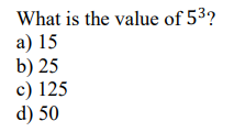 What is the cube root of 64?a) 2b) 4c) 8d) 16