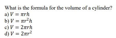 What is the formula for density?a) Mass x Volumeb) Mass / Volumec) Volume / Massd) Force x Area