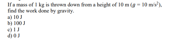 A 50 N force acts on a body to move 10 m in a horizontal direction with an angle 30Find the work done. a) 500 Jb) 250 3 Jc) 250 Jd) 500 3 J